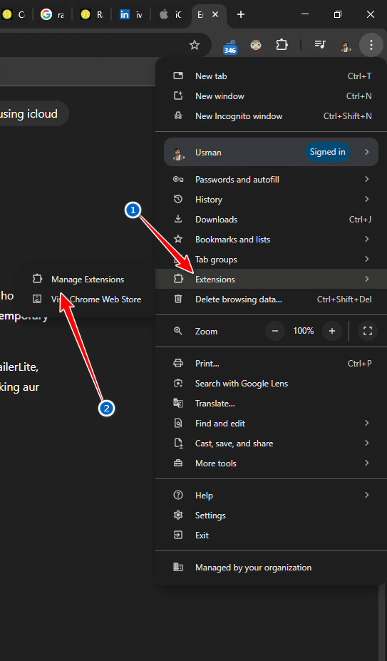 - انقر على النقاط الثلاث في الزاوية العلوية اليمنى من متصفحك.