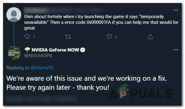 ملاحظة: إذا اكتشفت مشكلة في الخادم، فلن تتمكن أي من الإصلاحات المحتملة الأخرى المذكورة أدناه من حل مشكلة 0x000001FA نظرًا لأن المشكلة خارجة عن سيطرتك تمامًا – في هذه الحالة، الشيء الوحيد الذي يمكنك فعله هو الانتظار حتى يقوم المطورون بإصلاح المشكلة من جانبهم.