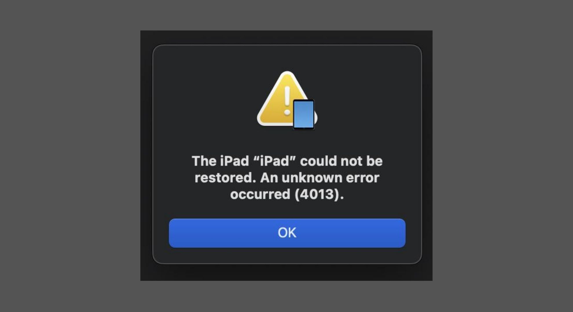 إحدى المشكلات المحبطة بشكل خاص أثناء هذه التحديثات هي “تعذر استعادة iPad الخطأ 4013“، والتي غالبًا ما تكون مصحوبة برسالة “حدث خطأ غير معروف“.