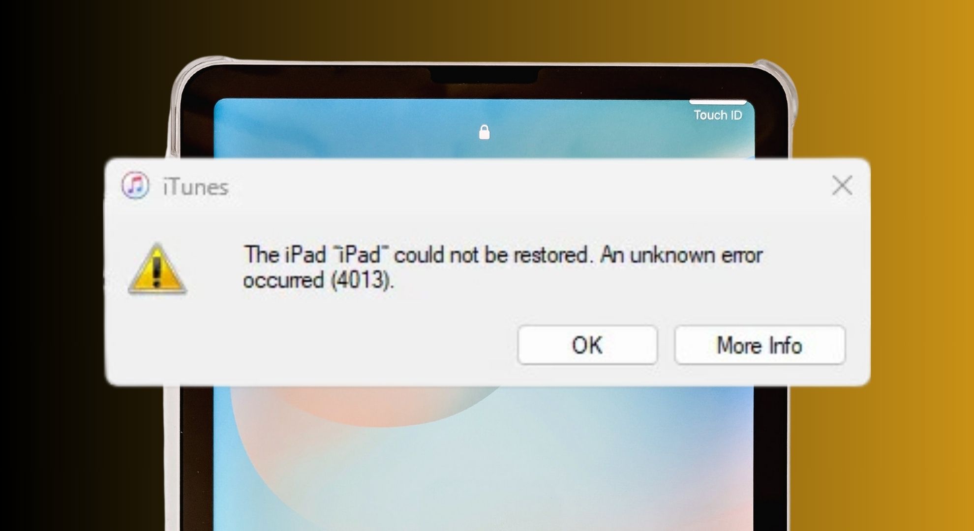 عند محاولة تحديث جهاز iPad الخاص بك أو استعادته إلى حالة سابقة، قد تواجه خطأً يُعرف باسم الخطأ 4013. غالبًا ما يكون هذا الخطأ مصحوبًا بإشعار ينص على: “تعذر استعادة iPad. حدث خطأ غير معروف (4013).
