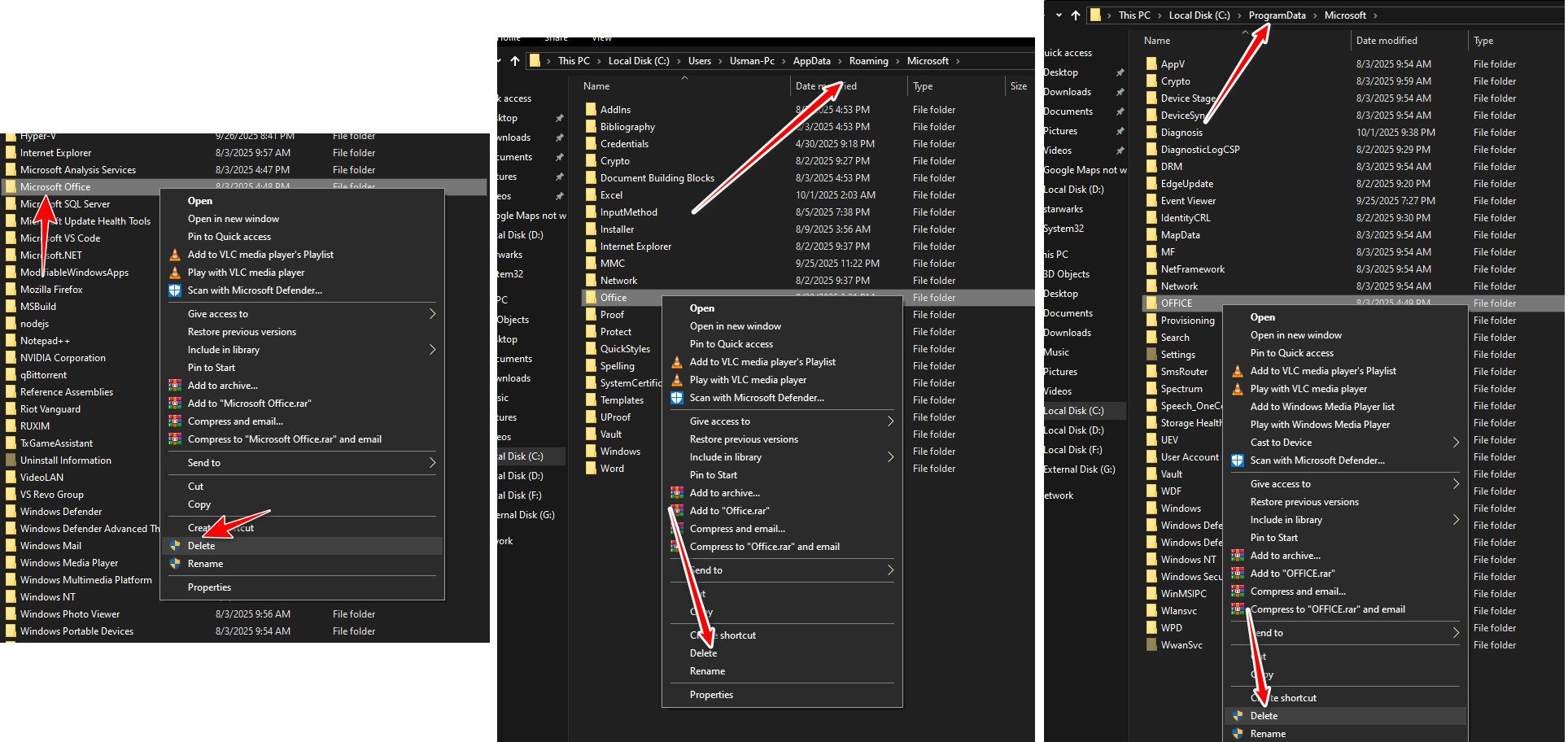 - حدد مجلد Office في كل مسار واحذفه.