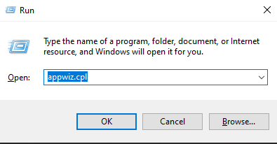 - اضغط على Win + R، واكتب appwiz.cpl، ثم اضغط على Enter.