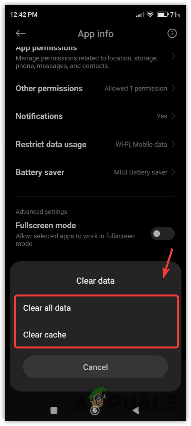 - بعد ذلك، اختر مسح ذاكرة التخزين المؤقت وقم بتأكيد الإجراء.