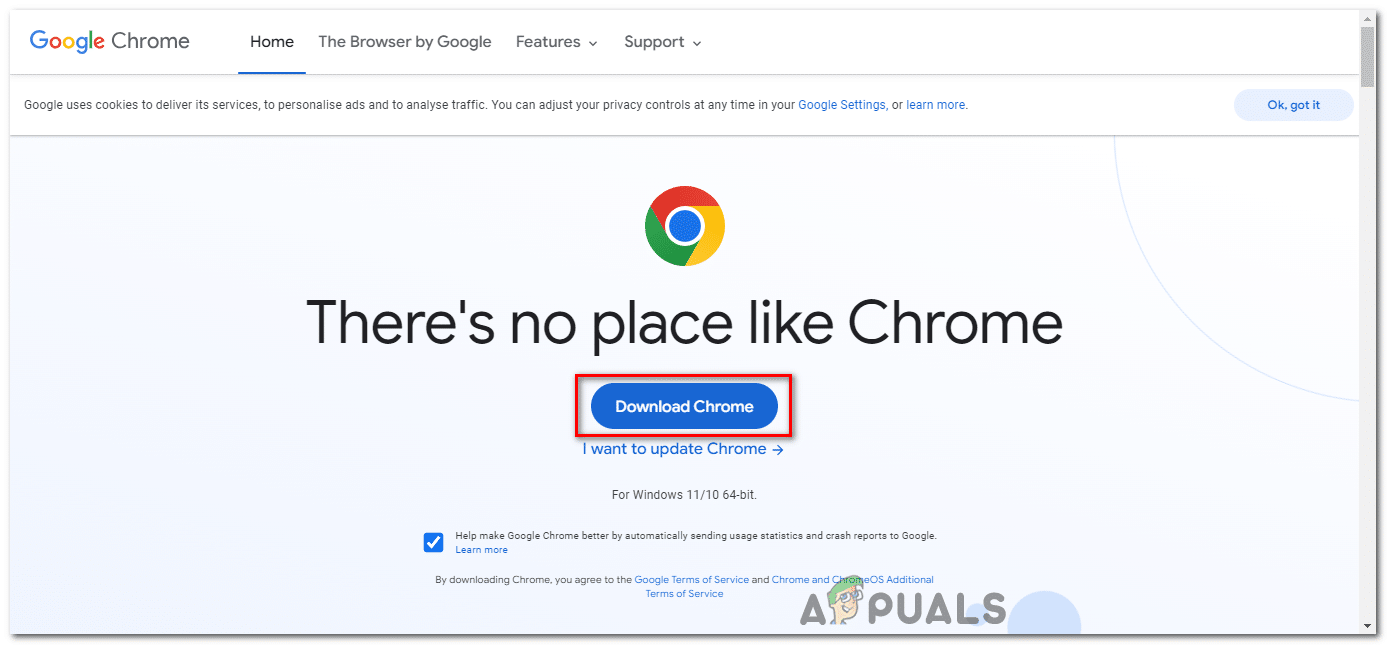 - افتح متصفحًا آخر (مثل Microsoft Edge) وانتقل إلى صفحة تنزيل Google Chrome الرسمية Google Chrome.