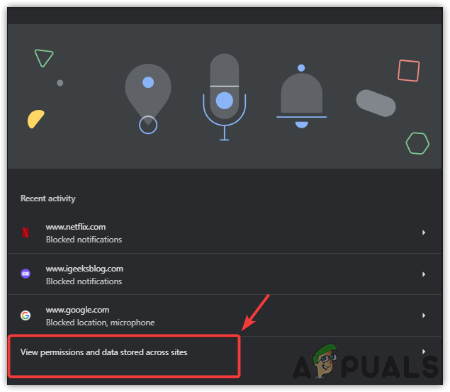 - اختر عرض الأذونات والبيانات المخزنة عبر المواقع.
