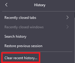 - اختر السجل ثم انقر على مسح السجل الحديث…