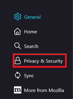 - انتقل إلى لوحة الخصوصية والأمان على الجانب الأيسر من الصفحة.