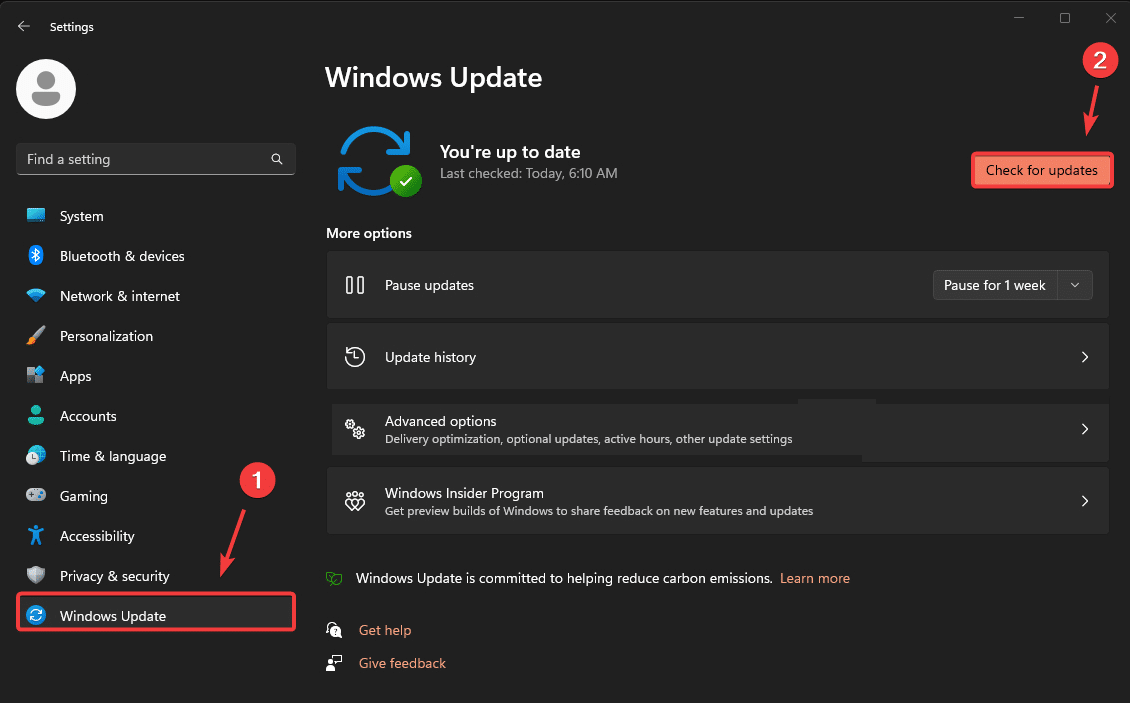 - انقر على Check for updates. إذا تم العثور على تحديثات، فانقر على Download and Install.