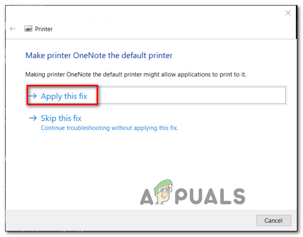 - خلل في قائمة انتظار الطابعة – إذا كانت طابعة HP الخاصة بك متصلة بجهاز كمبيوتر يعمل بنظام Windows 10، فقد تتوقع رؤية هذا الخطأ بسبب خلل في قائمة الانتظار. إذا كان هذا السيناريو ينطبق عليك، فيجب أن تكون قادرًا على إصلاح هذه المشكلة عن طريق تشغيل أداة استكشاف أخطاء الطابعة وإصلاحها وتطبيق الإصلاح الموصى به.