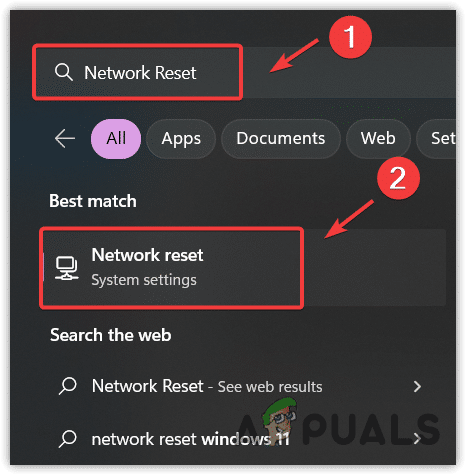 1. اضغط على مفتاح Win واكتب Network Reset.
