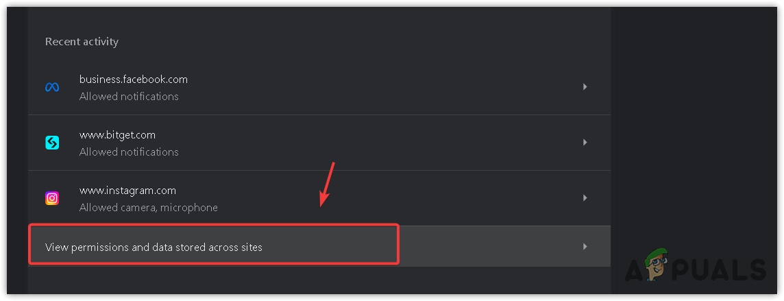 4. وانقر على عرض الأذونات والبيانات المخزنة عبر المواقع.