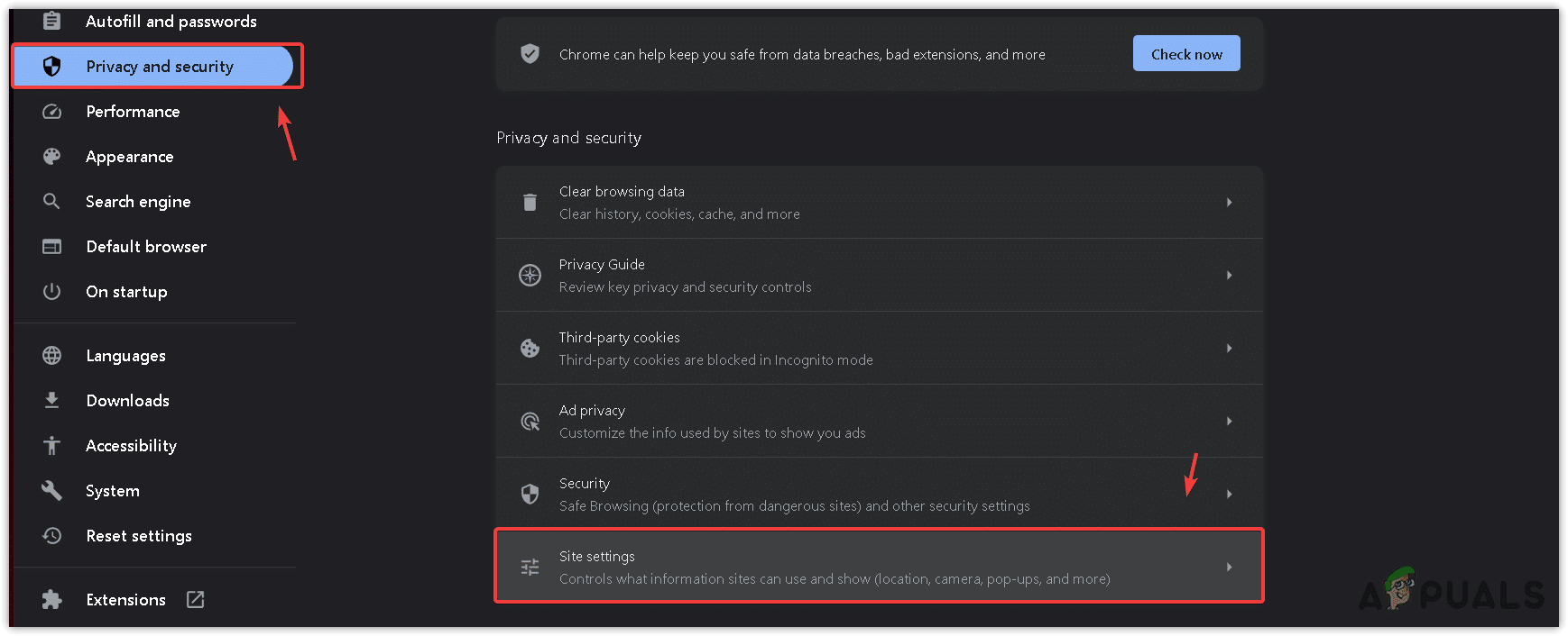 عند زيارة موقع ويب، يقوم المتصفح تلقائيًا بحفظ محتواه في ملفات ذاكرة التخزين المؤقت حتى لا يحتاج المتصفح إلى طلب البيانات في كل مرة تزور فيها الموقع. ومع ذلك، إذا تعرضت بيانات ذاكرة التخزين المؤقت لأي موقع ويب للتلف، فسيتسبب ذلك في توقف الموقع عن العمل في متصفحك. لذا، في هذه الطريقة، سنحاول مسح ذاكرة التخزين المؤقت للموقع لمعرفة ما إذا كانت المشكلة ستُحل أم لا.