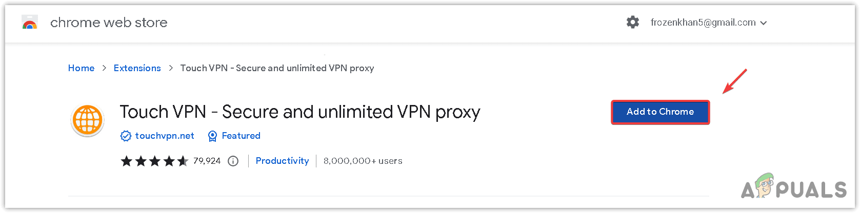 1. افتح علامة تبويب جديدة وابحث عن إضافة VPN. إذا كان لديك إضافة بالفعل، يمكنك الاتصال بشبكة VPN للوصول إلى Imgur. ولكن إذا كنت لا تستخدم VPN، فابحث عن Touch VPN أو أي VPN آخر تفضله للاتصال.