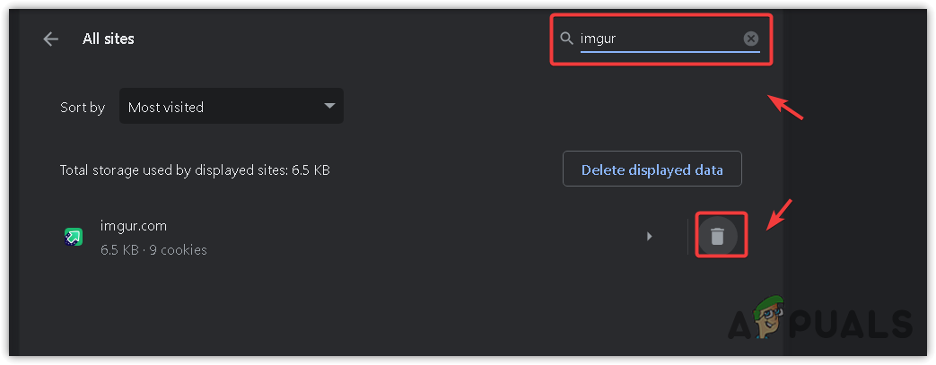 5. هنا، ابحث عن Imgur، ثم انقر على أيقونة الحذف لإزالة بيانات الموقع.