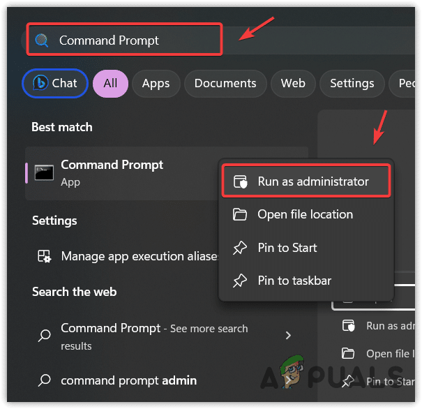 2. انقر بزر الماوس الأيمن على Command Prompt واختر تشغيل كمسؤول.