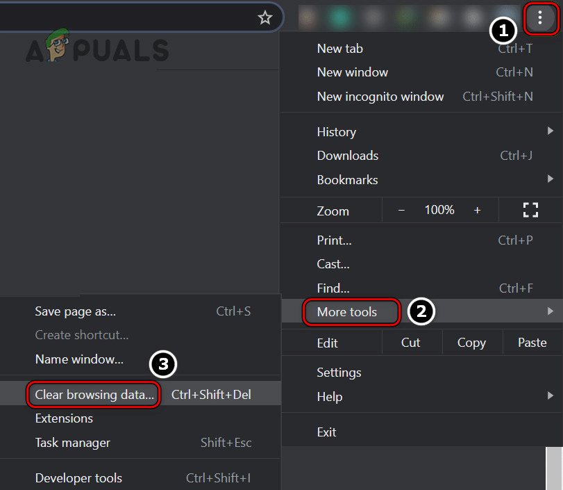- الآن، مرر مؤشر الماوس فوق المزيد من الأدوات (More Tools) واختر محو بيانات التصفح (Clear Browsing Data).