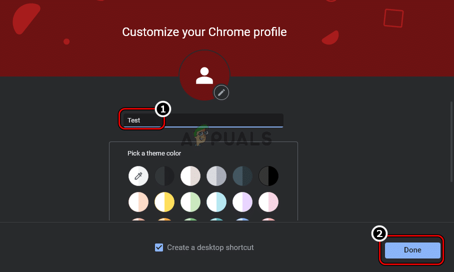 - ثم أدخل الاسم للملف الشخصي الجديد (على سبيل المثال، Test) وانقر على تم.