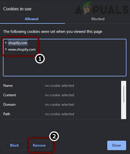 - ثم حدد ملف تعريف ارتباط (cookie) وانقر على إزالة.