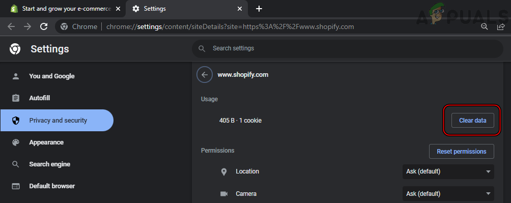 - افتح متصفح Chrome وتوجه إلى الموقع الإلكتروني الذي يواجه مشكلة (مثل Shopify).