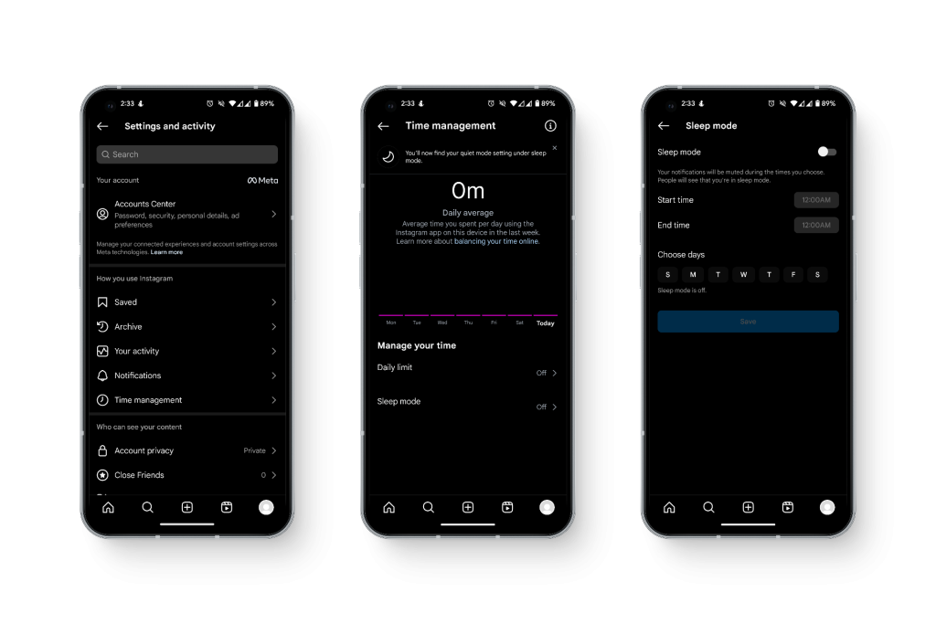 5. التحقق مما إذا كان وضع السكون (Sleep Mode) مفعّلاً في Instagram