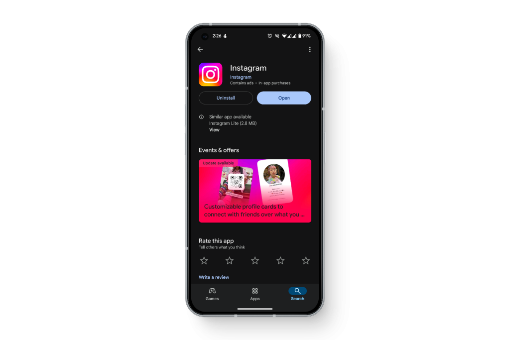 إذا فشلت جميع الحلول الأخرى، فتأكد من أن لديك أحدث إصدار من التطبيق يعمل على هاتفك. غالبًا، عند تحديث التطبيق، قد تفشل الإصدارات القديمة في العمل بشكل صحيح، مما يؤدي إلى تجربة سيئة. إذا كانت لديك أي مشكلات تتعلق بكيفية استهلاك الإصدارات الأحدث لمساحة أكبر أو استخدام المزيد من الإنترنت، يمكنك دائمًا اختيار الإصدار المخفف Instagram Lite.