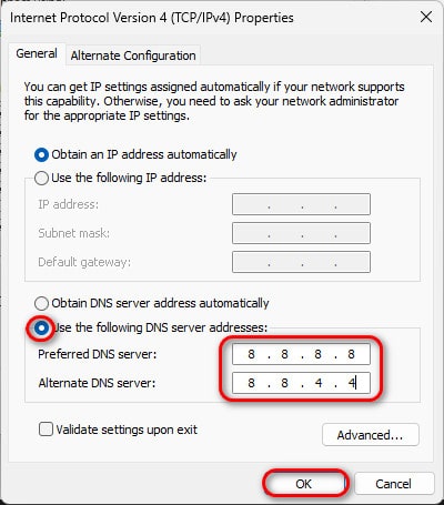 خادم DNS البديل: 8.8.4.4
