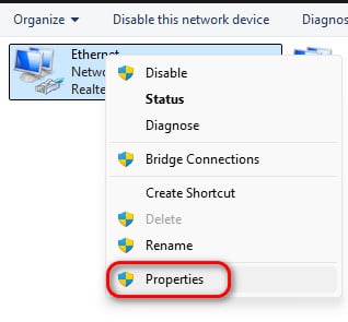 - انقر بزر الماوس الأيمن على اتصال الشبكة النشط لديك وحدد خصائص.
