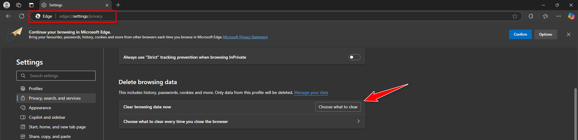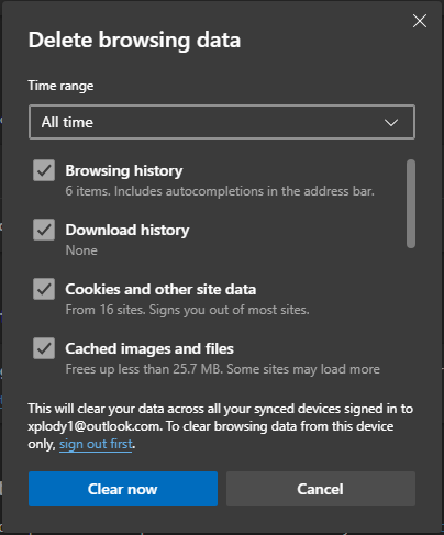 يمكن أن تمنع ملفات تعريف الارتباط التالفة أو البيانات المخزنة مؤقتًا Netflix من التحميل بشكل صحيح. نظرًا لأن تطبيق Netflix يستخدم إطار عمل Edge، فإن مسح ذاكرة التخزين المؤقت لمتصفحك غالبًا ما يحل المشكلة.