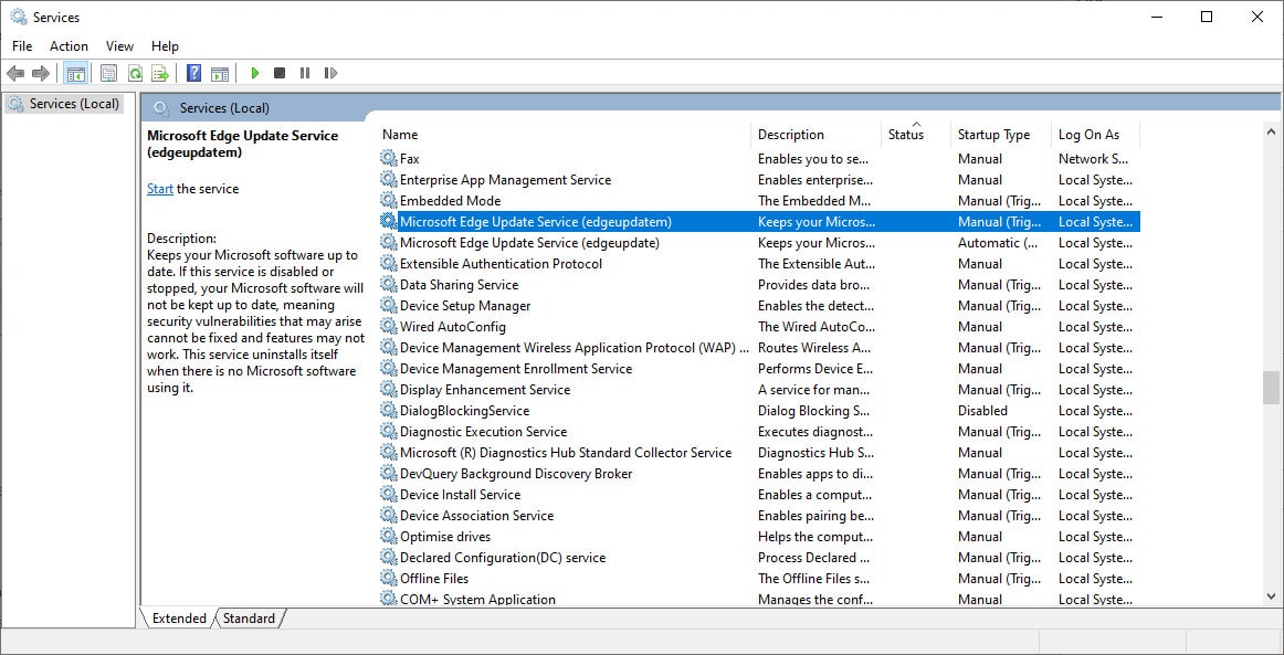 - حدد هذه الخدمات الهامة: ⇛ خدمة تحديث Microsoft Edge (edgeupdate) ⇛ خدمة رفع مستوى Microsoft Edge