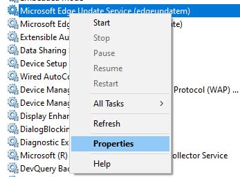 - انقر بزر الفأرة الأيمن على Microsoft Edge Update Service → خصائص.