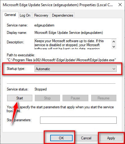 - عيّن نوع بدء التشغيل إلى تلقائي وانقر على تطبيق.