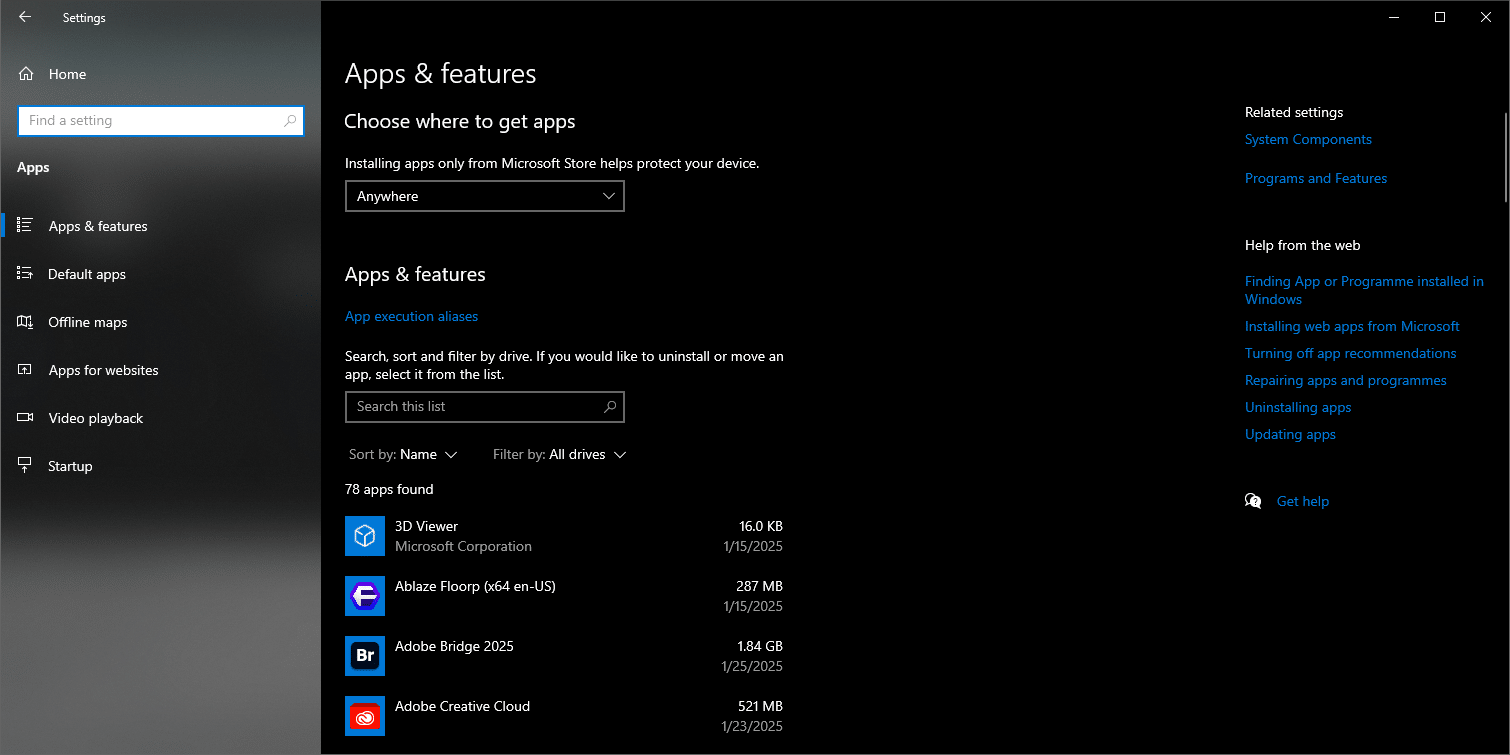 - انتقل إلى التطبيقات ← التطبيقات المثبتة وابحث عن Netflix.