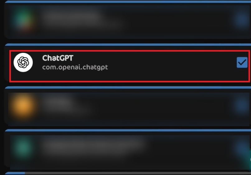 - حدد ChatGPT من القائمة وقم بتبديل جميع الخيارات المتاحة.