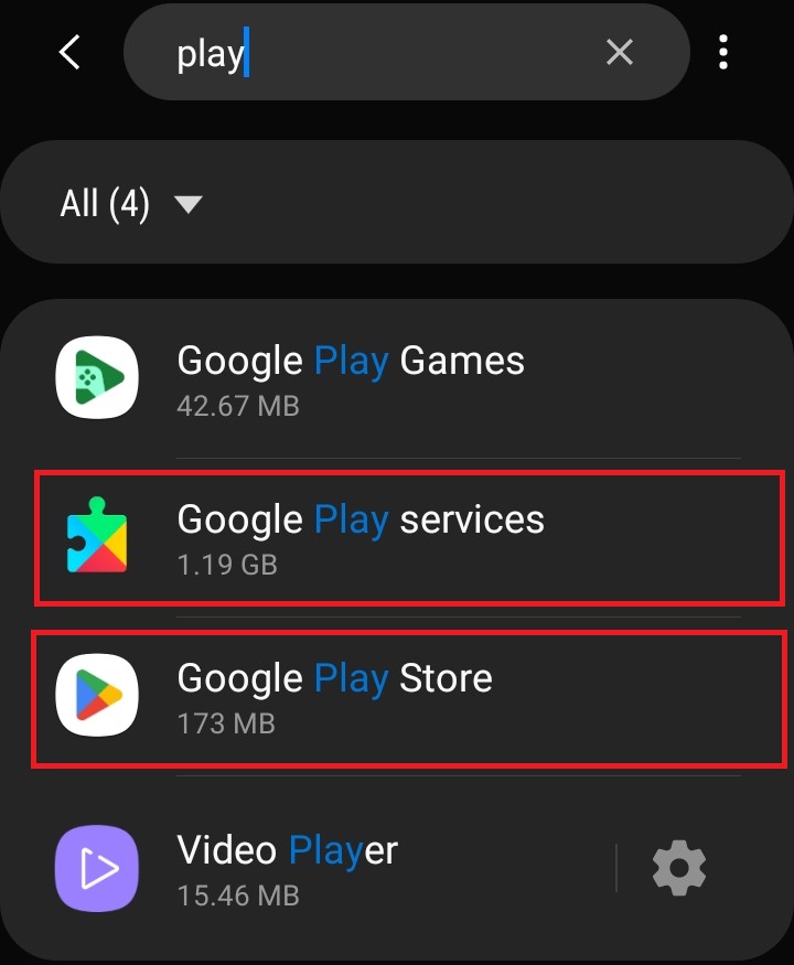 - كرر نفس العملية لـ Google Play Store و Google Play Services.