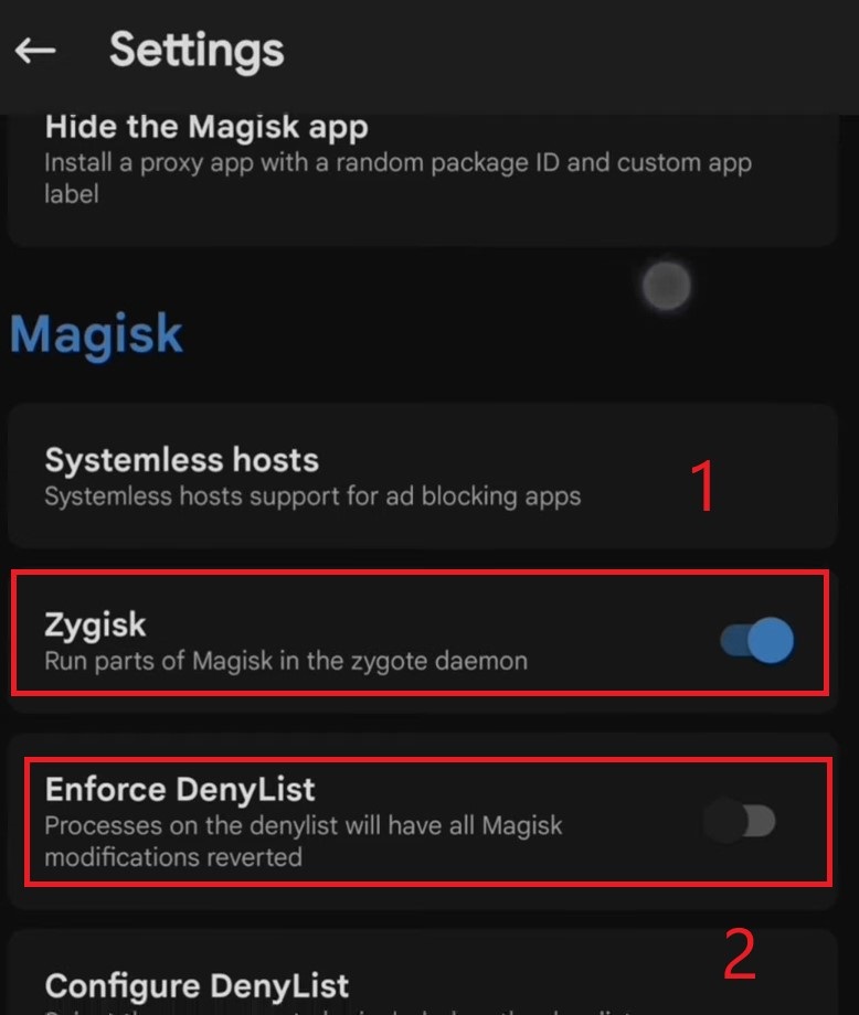 - انتقل إلى الإعدادات وقم بتمكين Zygisk.