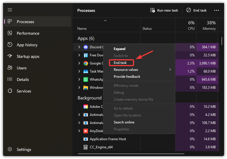 1. اضغط على Ctrl + Shift + Esc لفتح إدارة المهام (Task Manager).