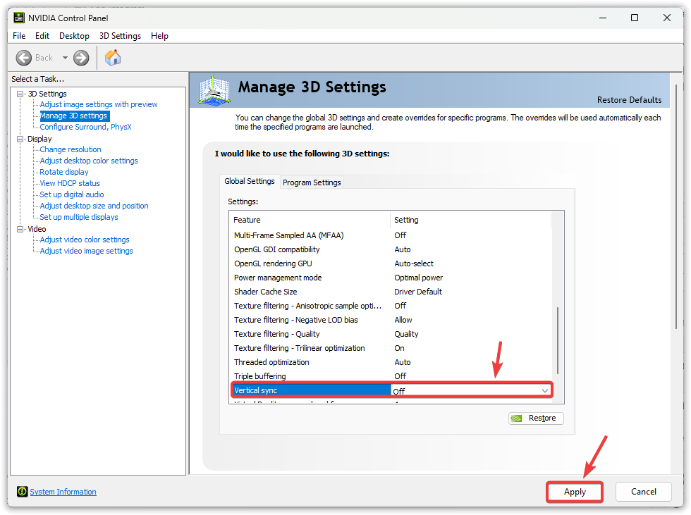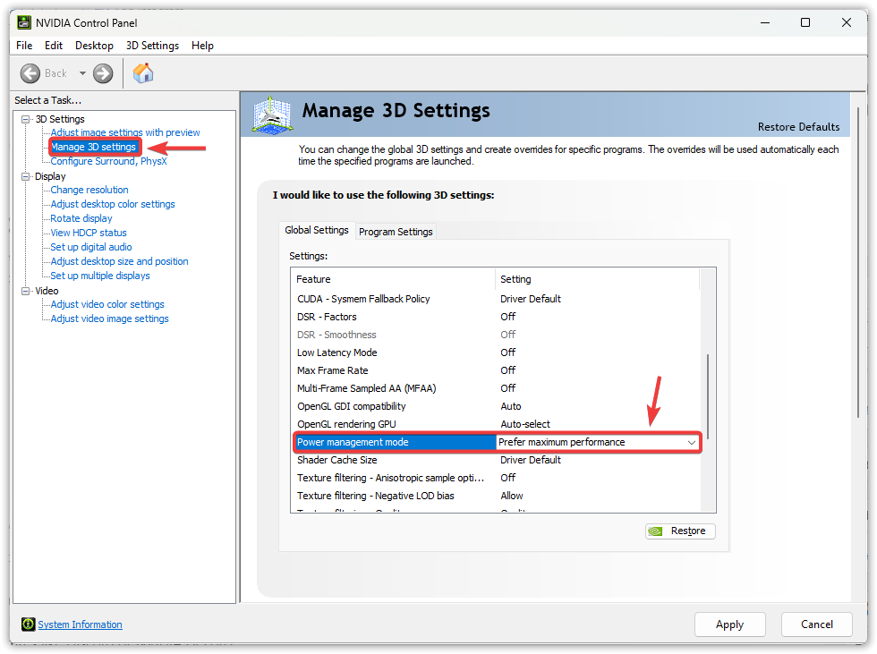 يمكن أن تتسبب بعض إعدادات NVIDIA في سلوك غير متناسق لوحدة معالجة الرسومات، خاصةً إذا سُمح لها بتقليل تردد التشغيل بقوة أو وضع الإطارات في قائمة الانتظار بطريقة تضر بتيرة الإطارات. تهدف هذه التعديلات إلى تحقيق سلوك أكثر ثباتًا أثناء اللعب. سنعرض لك إعدادات Nvidia ثلاثية الأبعاد محسّنة لمساعدتك في إصلاح التأتأة.