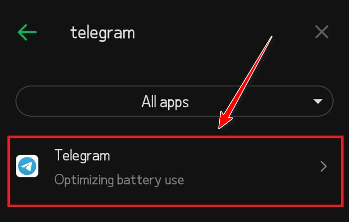 - عيّن Telegram على غير محسّن لتعطيل تحسين البطارية لهذا التطبيق.