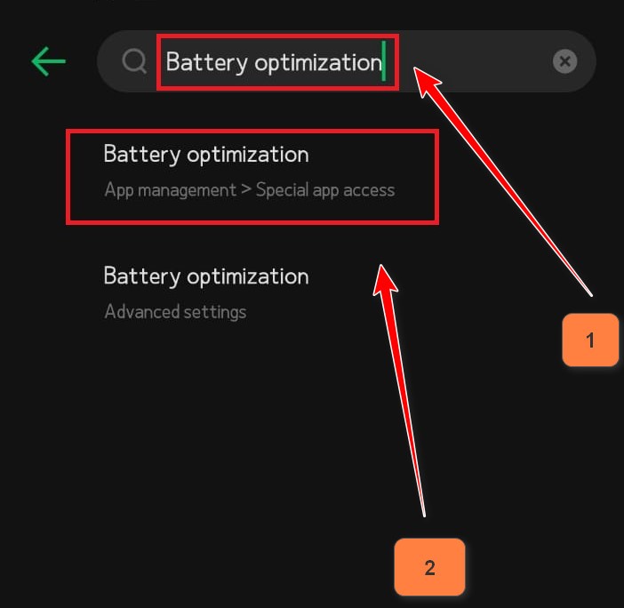 - بمجرد ظهور نتائج البحث، حدد خيار تحسين البطارية.