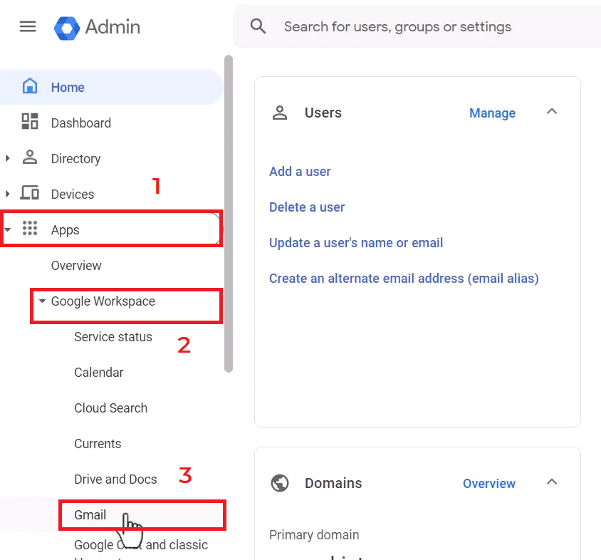 - انتقل إلى التطبيقات > Google Workspace > Gmail.