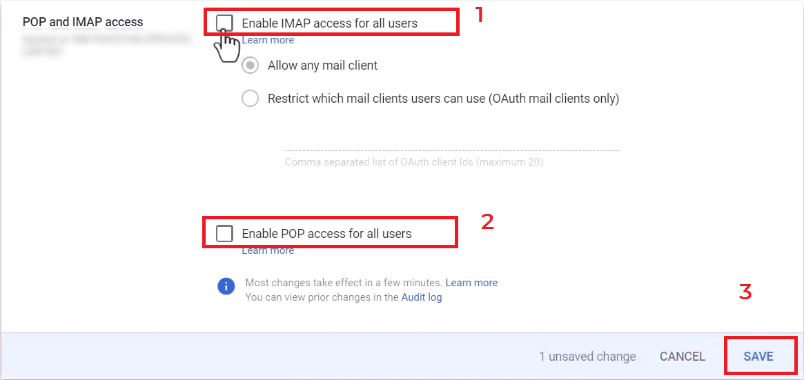 3. تعطيل الوصول عبر IMAP/POP