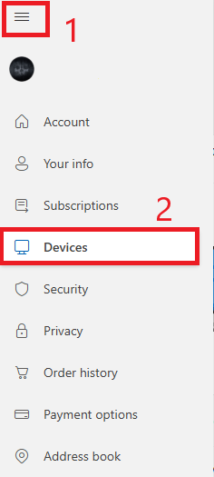 - انقر على القائمة (أيقونة الهامبرغر) في الزاوية العلوية اليسرى، ثم حدد “الأجهزة”.