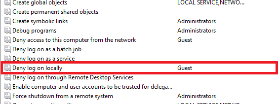 - في الجزء الأيمن، انقر نقرًا مزدوجًا فوق “رفض تسجيل الدخول محليًا”.