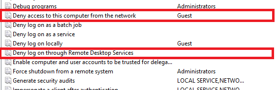 - كرر هذا الإجراء لـ “رفض تسجيل الدخول عبر خدمات سطح المكتب البعيد” و “رفض الوصول إلى هذا الكمبيوتر من الشبكة”.