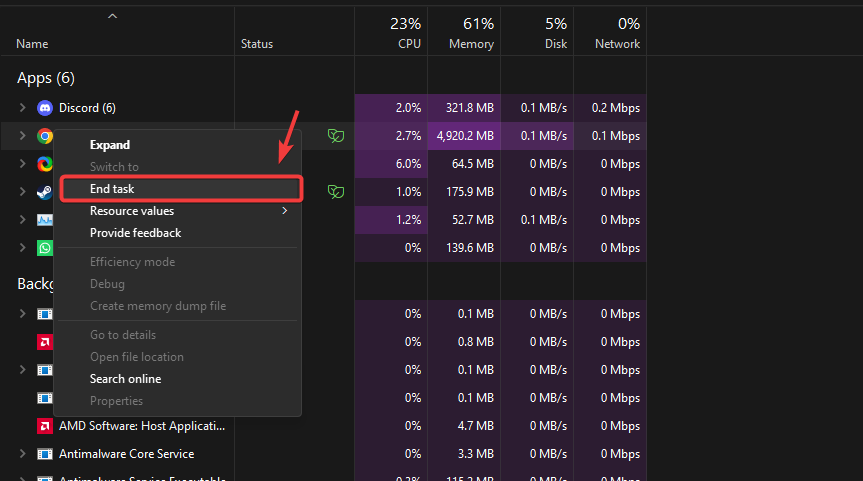 3. انقر بزر الماوس الأيمن على كل عملية غير أساسية واختر End Task.