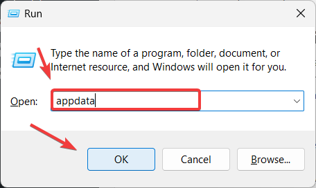 2. في مربع الإدخال، اكتب appdata ثم انقر على OK لفتح مجلد AppData.