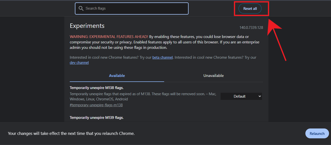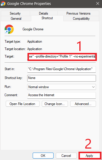 --no-experimentsمن الاختصار. - أعد تشغيل Chrome بشكل طبيعي.