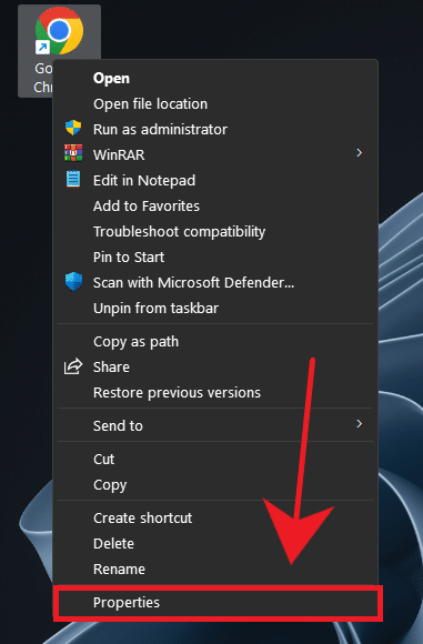 - انقر بزر الماوس الأيمن على اختصار Chrome الخاص بك ← خصائص.