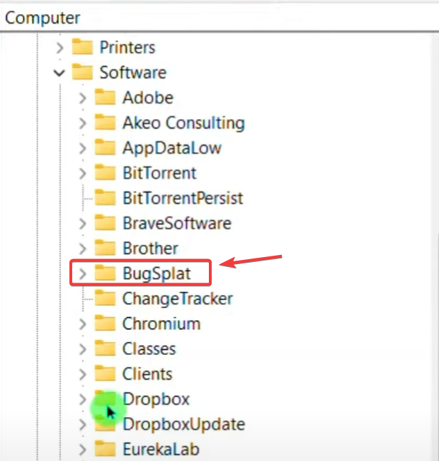يجمع BugSplat تقارير الأعطال، ولكن الإدخالات التالفة يمكن أن تؤدي إلى تكرار الأخطاء. غالبًا ما يؤدي حذف مفتاح السجل هذا إلى حل المشكلة.