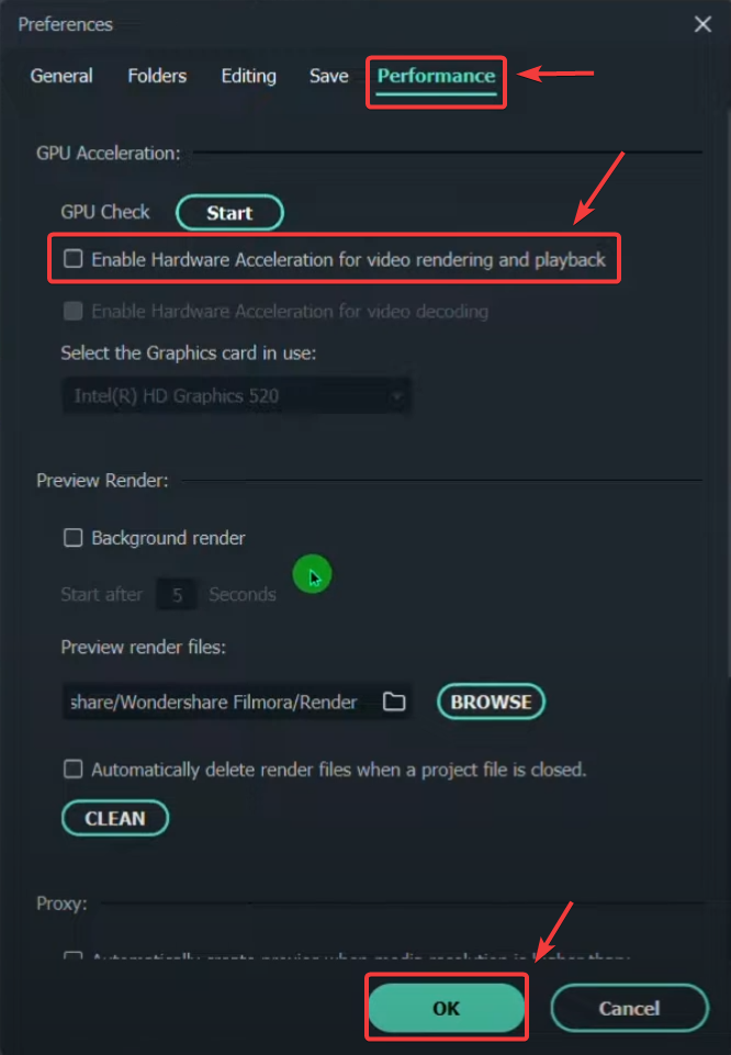 4. انقر على موافق ← أعد تشغيل Filmora.